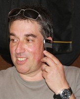 Das Saitensprung-Urgestein: Unser Bassmann Ralf - die moralische Instanz und Wahrer der Banddisziplin. Hier gerade in Vertragsverhandlungen mit seiner Managerin ...